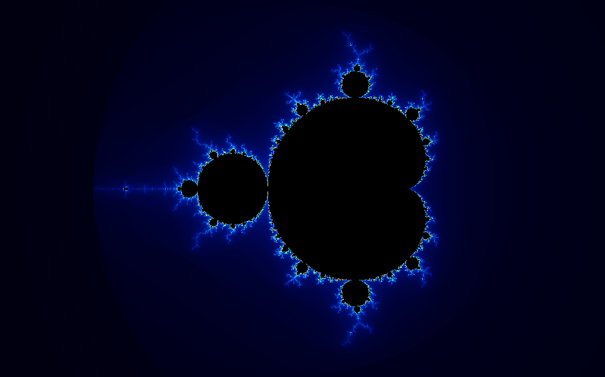In other words, for each value of c, we iterate this formula hundreds or thousands of times. If the absolute value of the result never grows to infinity, that c belongs to the Mandelbrot set.